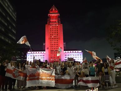 On September 8, Los Angeles, CA, lighted up the City Hall building in white-red-white. Local activists held a candlelight vigil in front of it